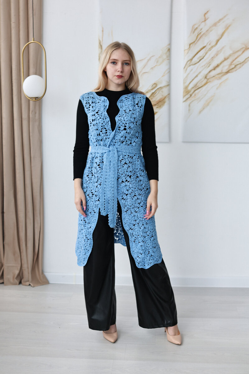 Вязаный жилет с поясом из 100% итальянского хлопка