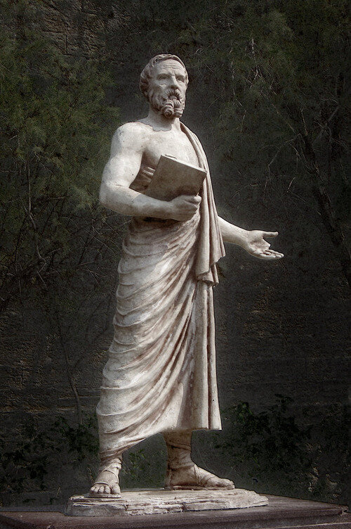 Древнегреческий историк, призванный «отцом истории». Автор сочинений, посвященных описанию греко-персидских воин с изложением истории государства Ахеменидов, Египта и др. Дал первое систематическое описание жизни и быта скифов. Родился в Галикарнасе, греческом городе на юго-западе Малой Азии, находившемся тогда под властью Персии. В юности Геродот принимал участие в восстании против Лигдама, тирана Галикарнаса, и в результате был вынужден покинуть родину. В путешествиях он провел более 10 лет, объехал почти все известные страны своего времени: Грецию, южную Италию, малую Азию, Египет, Вавилон, Персию, посетил большинство островов Средиземного моря, побывал на Черном море, в Крыму (вплоть до Херсона) и в стране скифов. Вернувшись ещё молодым человеком на родину, в Галикарнас, Геродот вновь принял участие в народном движении против тирана Лигдама и содействовал его свержению. В 444 г. до н.э. Геродот присутствовал на Панафинейских празднествах и прочитал там отрывки из описания своих пу