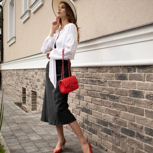 Мы уже рассказывали вам о том, как с помощью правильно подобранного наряда вы можете скинуть разом 5-10 лет (ссылку прикрепили в конце статьи). Сегодня расскажем, какие сочетать цвета, чтобы ваш образ выглядел дороже. 1. Белый + чёрный Классика, проверенная временем! Сочетание чёрного и белого создают равновесный баланс. Эти два цвета всегда выглядят дорого и благородно, поэтому их контрастное сочетание сразу притягивает к себе взгляд окружающих. На фото можно увидеть нашу новинку - платье-комбинацию из натурального льна, выполненное в чёрном цвете. С ним можно создавать самые разные образы, дополняя белыми вещами: свободными рубашками, джемперами, кардиганами и даже футболками. 2. Молочный + коричневый Если сочетание белого и черного вам кажется слишком ярким, присмотритесь к двум другим контрастным цветам: молочному и коричневому. Взором оба цвета воспринимаются гораздо мягче, при этом не теряют в себе благородства. Пример такого сочетания можно увидеть на нашем платье с крылышками и