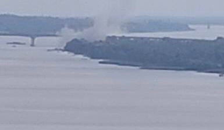 На представленной фотографии и видеокадрах действительно можно увидеть задымление как на самом мосту, так и вблизи него, однако, насколько серьёзными являются повреждения моста, неизвестно.