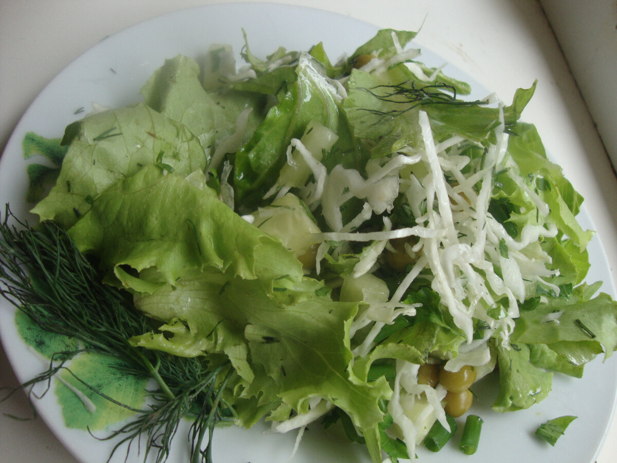 Дорогие мои друзья и подписчики. Сегодня предлагаю Вам легкий и очень вкусный салат"Витаминка". Вкусный ,доступный в любое время года! Уверенна ,что понравится. Приятного аппетита! Рецепт: 1 большой свежий огурец, 100г(стакан) свежей капусты, 1 баночка зеленого горошка(бондюэль), листья салата-1 пучок, немного зеленого лука, укропа,соль, оливковое масло. И все! Вкус салата необыкновенный! Мне будет очень приятно если я услышу от ВАС ваше мнение! Будьте здоровы и не забывайте о салате "Витаминка" .