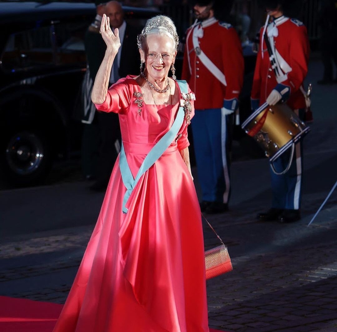 В минувшие выходные королева Дании Маргрете II все-таки отпраздновала свое 50-летие на троне. В честь такого события в Копенгаген прибыли её любимые родственники: двоюродный брат король Швеции Карл XVI Густав с женой королевой Сильвией и троюродный брат король Норвегии Харальд V с женой королевой Соней. Они посетили гала-представление в честь золотого юбилея Маргрете, праздничную службу в Копенгагенском соборе, обед на яхте Dannebrоg и, наконец, торжественный ужин во дворце Кристиансборг. Среди почётных гостей были также президенты Финляндии и Исландии, обе сестры королевы принцессы Бенедикта и Анна-Мария, сын юбилярши кронпринц Фредерик с женой кронпринцессой Мэри и младший сын принц Иоахим с женой принцессой Мари. На государственном ужине гостям было предложено меню из трех блюд. Закуска состояла из тимбаля с фарерскими гребешками, датских лангустов и тыквенного соуса с имбирем. В качестве основного блюда подавали запеченного дикого овцебыка из Гренландии (😱), тарталетки с овощам