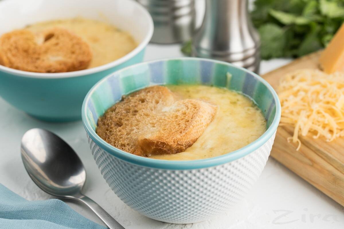 📖 Ингредиенты: - Белый Лук - 1 кг. - Сливочное масло - 60 г. - Бульон - 1 литр - Тимьян - 6 веточек - Твердый сыр - 200 г. - Багет - 1 шт. 🧑🏻🍳 Приготовление: 1. Лук нарезать на четвертинки, а затем тонкими полосками. 2. Растопить сливочное масло и обжаривать лук примерно 20-35 минут до карамелизации. 3. Влить 250 мл бульона и добавить веточки тимьяна, залить еще 250 мл и повторить процесс выпаривания. 4. После этого, влить оставшуюся часть бульона, довести до кипения и варить до образования средней густоты. 5. Нарезать багет ломтиками и поджарить в тостере или поставить на 6 минут в духовку при 180 С. 6. Когда суп будет готов, перелить порционно в огнеупорную посуду (горшки), оставляя по 1-2 см. Засыпать половиной тертого сыра все порции, выложить по два ломтика гренок и сверху засыпать оставшимся сыром. Поставить в духовку на 200 С до расплавления сыра. #луковыйсуп #суп #французскийлуковыйсуп 🔝