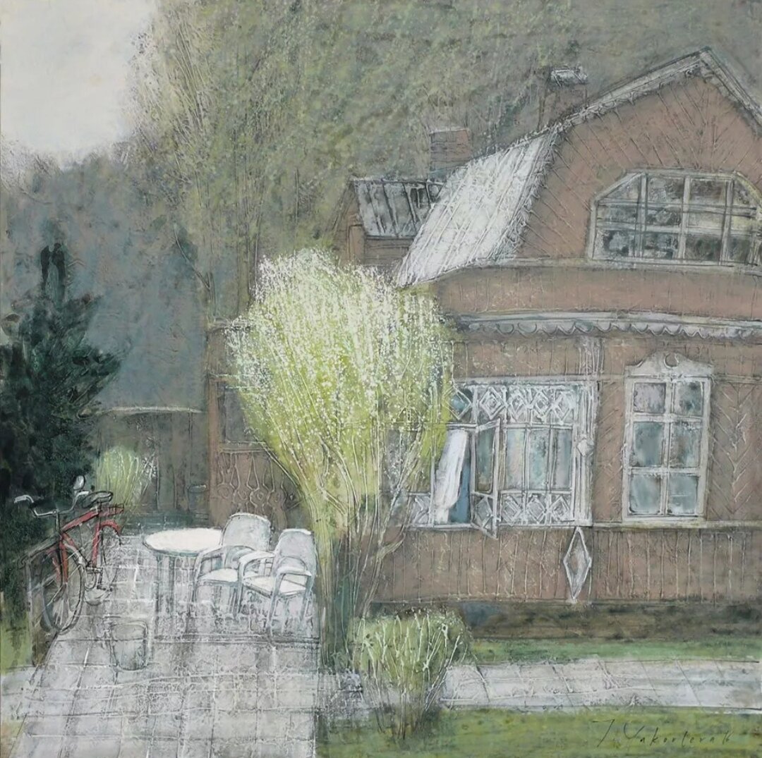 Комментирует куратор галереи Горбунова Мария: "Полуоткрытое окно, белая занавеска - такое настроение лета, настроение лиричное, романичное, состояние легкости. Работа создана в собственной авторской технике - бумага на планшете плюс акрил. Цвет приглушенный, сдержанный, деликатный. Потёртая, деликатная цветовая гамма с эффектом сдержанного кантри. Состояние лиричное за счет утонченных элементов, которые явно считываются - тонких рисунков окон, крыши дома, тонких веток деревьев на переднем плане. Линии дорожки, линии растительности и очертания самого дома держат всю композицию. Цвет накладывается сверху как дополнительный элемент. Работу можно отнести больше к графической серии. По своему исполнению она больше тяготеет к графике, так как рисунок является главным". Картина доступна для приобретения на нашем сайте. Подписывайтесь на канал и будьте в курсе того, что происходит в современном искусстве! Ждем вас!