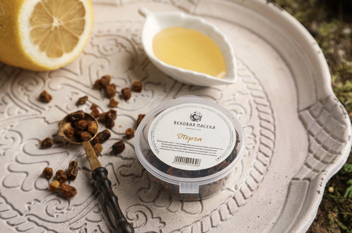 Производством перги мы начинаем заниматься осенью, это ориентировочно сентябрь. На протяжение всего лета, начиная с ранней весны, пчелки собирают цветочную пыльцу с разных цветов и закладывают ее в ячейки сот. Пересортировав перговые рамки и, конечно, лучшее оставив пчёлам на зимовку, мы снимаем лишние. Как правило перга в сотах бывает с мёдом, так как если период медосбора пчёлам неуда складывать мед, то они начинают складывать его в ячейки с пергой и конечно же запечатывать забрусом (восковыми крышками). Срезая забрус, выкачиваем мед с рамок. Но медогонка не может 100% выкачать мед. Какаие -то частицы мёда остаются и поэтому мы даём эти рамки пчёлам на обсушку. Увозим ящики с перговыми рамками на удаленное расточение от пасеки., примерно на 4-5 метров от неё. Увозим обязательно, чтобы не вызвать воровство среди пчёл и чтоб соседей не пугать 😊. За пару часов пчёлы заберут всё до малейшей крупиночки и мы получим идеально сухие рамки с пергой. Многие пчеловоды не замарачиваются и