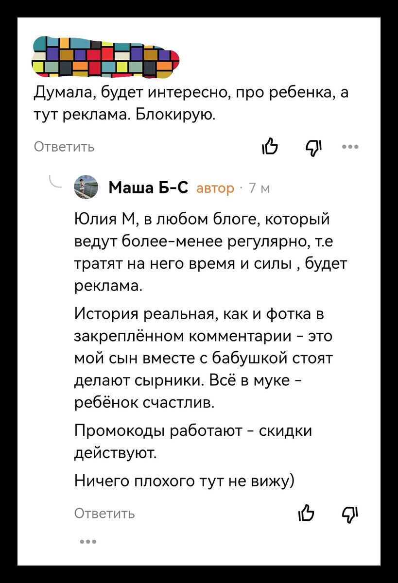 Обидно ли мне? Да, безумно. Потому что каждый подписчик мне реально важен и ценен (иначе бы в комментариях не отвечала). Честно скажу, что раздражение человека по поводу присутствия рекламы я понимаю, но решение заблокировать канал - нет. Реклама всё равно есть везде - такова наша реальность.