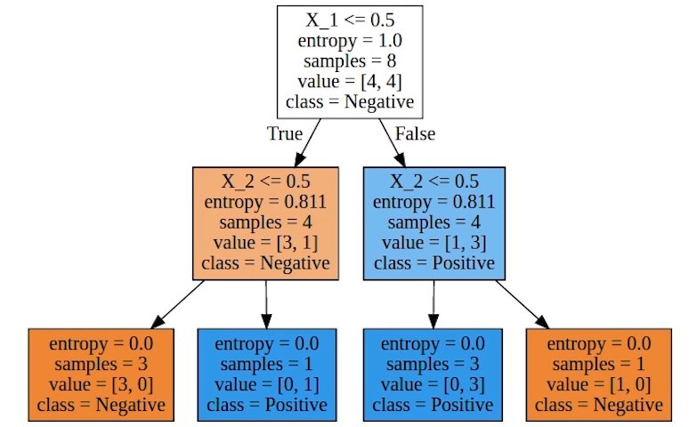 В статье пойдёт речь об одной из моделей машинного обучения - решающем дереве. Для чего нужна эта модель? Решающее дерево позволяет решать следующие задачи машинного обучения: Классификации - это когда нужно предсказать класс объекта, например, купит ли человек новый телефон или нет. Регрессии - когда надо предсказать какое-либо значение, например, стоимость дома. Как оно выглядит? Вместо сотни слов, проще показать картинку: Действительно, вид напоминает дерево, но с одной особенностью - оно перевёрнуто. X_1 и X_2 - некоторые переменные samples - количество наблюдений того или иного класса values - в квадратных скобках указано, сколько в подвыборке наблюдений первого и второго классов (например, [0, 1]. Здесь 0 наблюдений 1-го класса и одно наблюдение 2-го класса. class - имя класса, к которому принадлежит большинство наблюдений в подвыборке (в случае, когда количество наблюдений 1-го и 2-го класса равно, значение class выбирается случайно) entropy - энтропия (почти как в физике). О н