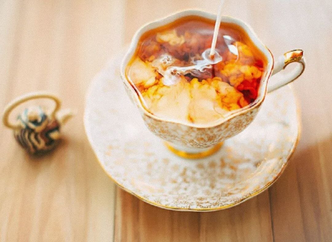 Люди делятся на два типа: одни просят подлить в чаёк молочка, другие чайно-молочный тандем категорически отвергают. Для первых есть хорошая новость: пить молочный чай полезно! Обычно молоко добавляют в чай, когда он уже готов. Однако существуют рецепты, когда чай варят прямо в молоке. Эксперты Тайваньской лаборатории доказали, что в жирной молочной среде чайный лист лучше экстрагируется. Результат получается суперароматным и с вагоном пользы. Есть мнение, что моду на молочный чай ввели англичане. В 17 веке при дворе короля чай подавали в фарфоровых чашках – таких дорогих и хрупких, что, казалось, лопнут, если встретятся с кипятком. Поэтому сначала на дно чашки наливали молоко и лишь затем подливали заваренный чай. Во вкусовом отношении оно действует подобно сахару или мёду: усиливает сладкую ноту чая. Существуют предположение, что бедняки добавляли молоко в напиток, чтобы компенсировать его невысокое качество. Этот лайфхак вам точно не понадобится, если вы заказываете чай у нас в AROMA