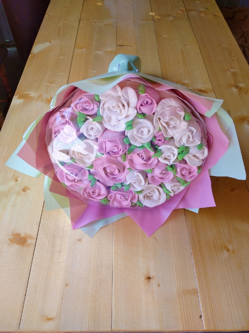 Уважаемые мои подписчики и гости канала, я рада приветствовать вас на моем канале, посвященным нашим собакам и нашему с ними житью-бытью. Меня зовут Елена и я заводчик среднеазиатских овчарок. Но сегодня хочу написать о моем новом увлечении. Извините, кто не любит мои кулинарные статьи. Потерпите немного. Я писала уже, что увлеклась зефирами. Первый свой зефир я отсадила 29 апреля. С той поры почти сразу я начал делать зефир на заказ. И новые вкусы постоянно пробовала и училась и ничего не пропадало. Самим ведь столько не съесть, сколько я делала. Постоянно до сих пор пробую новые сочетания. Вы пробовали когда нибудь зефир с перцем чили или алкоголем? Очень вкусно! Начала делать с начинкой зефир. Тоже отменный вкус! Но моей заветной мечтой было делать цветы из зефира. И вот 26 июля, через два месяца после первой зефирки, я собрала свой первый букет. Спасибо моей подруге, за пинок, я бы до сих пор боялась и не решалась сделать это. А тут она мне просто сказала, что срочно нужен букет