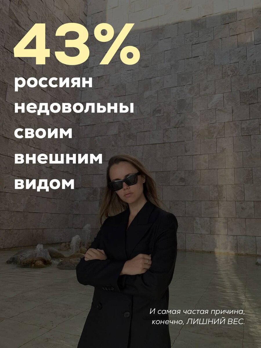 43% россиян недовольны своим внешним видом. И самая частая причина, конечно, ЛИШНИЙ ВЕС.