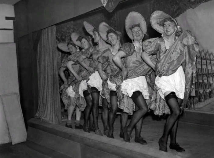 Во время войны солдаты испытывают большой стресс. Чтобы выдержать все ее ужасы, необходимо хотя бы на время забывать о происходящем. И в минуты затиший между боями солдаты отдыхают. Британские военнослужащие придумали свой способ отвлекаться от боев – с помощью пантомимы. Этот древний вид искусства зародился еще в Древней Греции. Играть на сцене в то время позволялось только мужчинам, им приходилось исполнять, в том числе, и женские роли. Во время пантомимы действие происходит молча, все эмоции и чувства передаются с помощью движений и мимики лица. Британские солдаты в перерыве между боями переодевались в женские платья, надевали чулки, красили губы и делали макияж лица, и в таком виде веселились сами и веселили друг друга. Об этом бы никогда не стало известно, если бы не фотографии Джона Топхэма. Фотограф интересовался жизнью обычных людей и путешествовал по стране. А в 1940 году он приехал в город Грейвсенд как раз в то время, когда там шла костюмированная репетиция военнослужащих, и