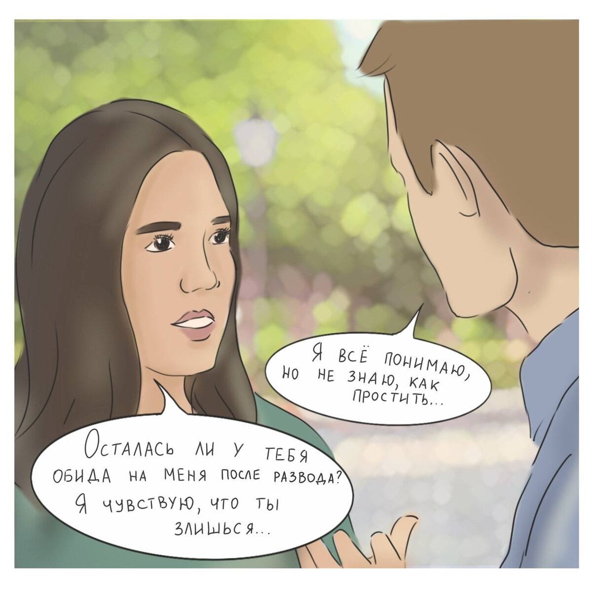 Юля догадалась, что Саша таит в себе обиду на то, что она от него ушла. Она решила не прятаться от проблемы и честно спросила Сашу, может ли она сделать что-то, чтобы он ее простил.