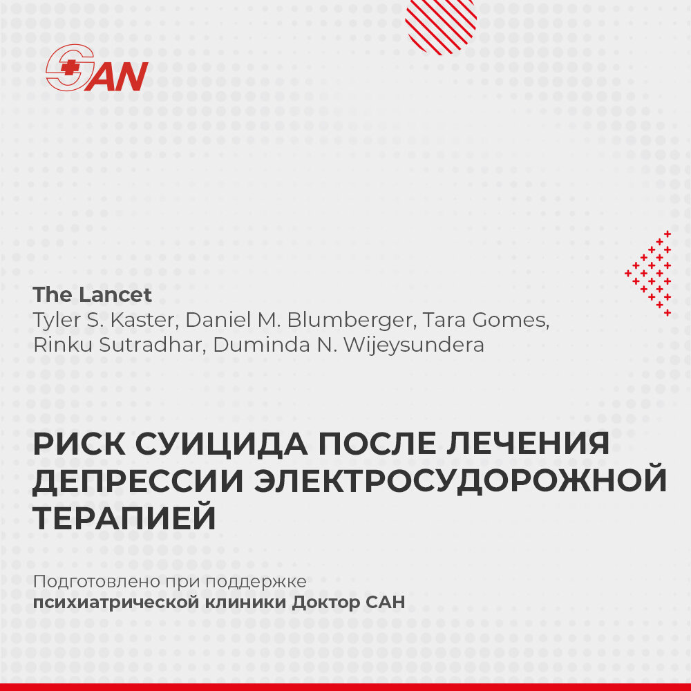 Группа ученых стремилась сравнить риск смерти в результате самоубийства после психиатрической госпитализации среди людей с депрессией, которые подвергались электрошоковой терапии, и тех, кто этого не делал.