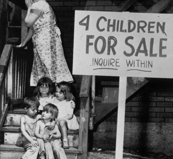 Теперь это выглядит дико. Как продавать своих детей, но полвека назад идея не казалась аморальной ни одной американской женщине. В 1948 году эта фотокарточка была во многих американских газетах. Четверо детей улыбаясь, сидят на крыльце дома, а рядом объявление об их продаже. Мать стыдливо прячет лицо Эта история оказалась трагичной для всех детей. Итак, женщина, которая решила продать детей, - Люсиль Чалифукс, 24 года. Недавно семья потеряла зарплату, и мать решила избавиться от детей. 1948 28 августа она продала своих детей в возрасте 2-6 лет. Кроме того, она была беременна пятым ребенком, которого позже отдали на усыновление. После того, как объявление появилось в газетах, многие американцы почувствовали жалость к семье. Они были готовы помочь с точки зрения работы, жилья и денег. Однако через несколько лет все дети были проданы и разделены на приемные семьи. Год спустя журналисты заинтересовались этой историей и решили узнать, как сложилась жизнь всех детей. К сожалению, для многих