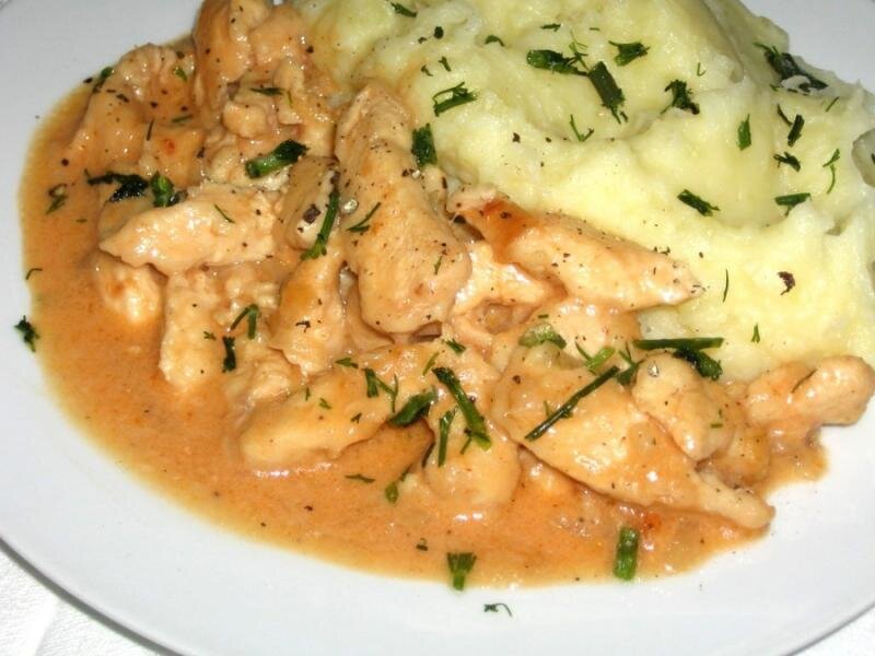 Что такое бефстроганов? Это популярное во всём мире блюдо русской кухни, которое готовится из мелко нарезанных кусочков говядины с соусом. А я решила попробовать только из курицы. Получилось очень нежно и вкусно. А еще быстро готовится - это для меня самое главное! Готовим соус - смешиваем сметану, томатную пасту, воду или бульон, солим, перчим и доводим до кипения. Курицу режем на полоски 1см толщиной и слегка отбиваем. Панируем в муке. Лук нарезаем и чуть поджариваем. Затем добавляем в сковородку курицу. Обжариваем на сильном огне 5 минут. Потом выливаем к курице соус и на медленном огне тушим минут 20. К бефстроганову отлично подойдет пюре картофельное, рис и макароны. Приятного аппетита! #бефстроганов #бефстрогановрецепт #бефстрогановизкурицы #рецепткурицы #рецепт #рецептыскурицей #рецептнаужин