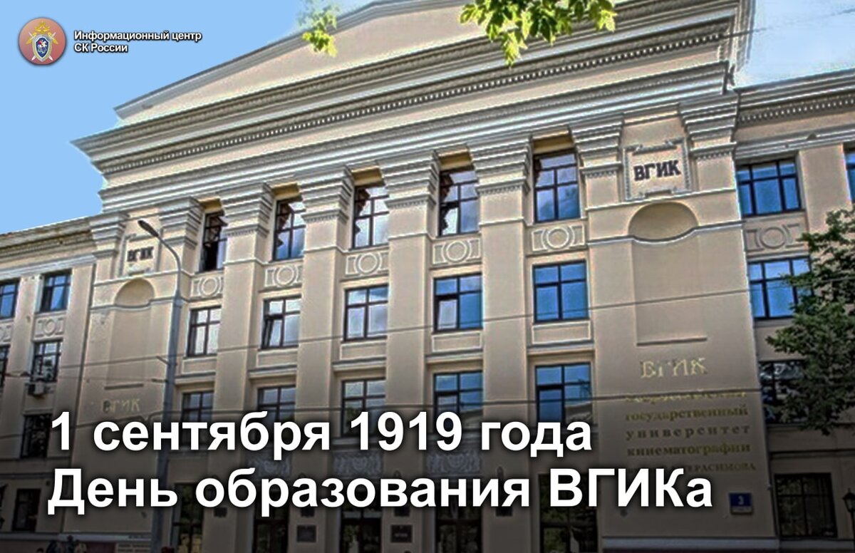 🗓В первый день осени отмечает свой день рождения старейшее учебное заведение в области кинематографии, телевидения, экранных искусств. 1 сентября 1919 года в Москве была основана Государственная школа кинематографии. Сегодня это Всероссийский государственный институт кинематографии имени С.А. Герасимова, или ВГИК. ❗️За свою 100-летнюю историю это учебное заведение неоднократно меняло наименование, но именно ВГИК стало тем именем, с которым связано его мировое признание. ↘️История ВГИКа началась в трудное для страны время – в годы Гражданской войны. Уже в начале 1920-х годов в школе начали работу первые факультеты. 🔸Именно во ВГИКе был снят первый советский полнометражный фильм «Серп и молот». Здесь же С.Эйзенштейном был разработан первый в мире курс по кинорежиссуре. Организованная в начале 1930-х годов фильмотека ВГИК (первая в мире фильмотека художественных фильмов), переросла впоследствии в Госфильмофонд. 🔹Становление института связано с деятельностью выдающихся мастеров к