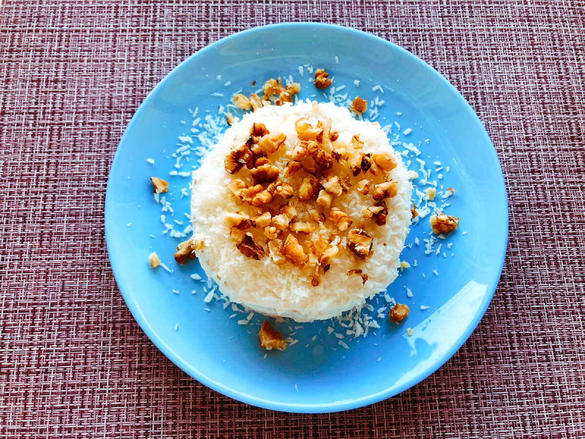 Украшаем оставшейся кокосовой стружкой и крошкой миндаля