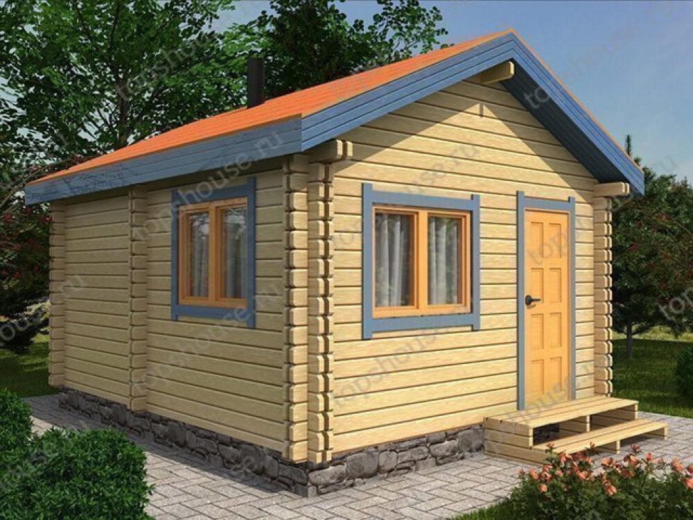 Баня из двойного бруса «Жар-птица» от строительной компании "ТопсХаус". Площадь застройки: 4 x 5 м, Общая площадь: 20 м2, стоимость: от 910 800 руб. Комплектация: стеновой комплект. В стандартную комплектацию входят: