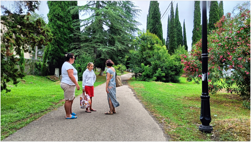 Закончилось лето. Пришло время вспомнить наш отдых в Абхазии. Он был классным. Жалко, что в житейской суете не хватает времени даже мысленно вернуться туда… В Абхазии нам встретилось очень много интересных людей, мы стали свидетелями интересных сцен и ситуаций… Любопытно, что ещё на вокзале в Волгограде мы стояли рядом и познакомились с семьёй, так же как и мы ехавшей в Новый Афон… Мы ехали первый раз, и Римма старалась не отставать от них. Боясь потеряться… Приятные люди… И так совпало, что вернулись мы из Абхазии в Волгоград через 9 дней, тем же поездом и опять встретились на вокзале… Мы много фоткали людей. А потом, проходя мимо, становились свидетелями интересных разговоров. Знаете, о чём говорят эти женщины? А мы знаем. Женщину, которая в платье, покусали собаки, когда она шла на работу. Она сейчас покажет укус. И та, которая полная, выразит желание лично поубивать всех собак… А хотите знать, о чём говорят эти женщины? Наверняка хотите. От той, что приглашает на экскурсии, мы у