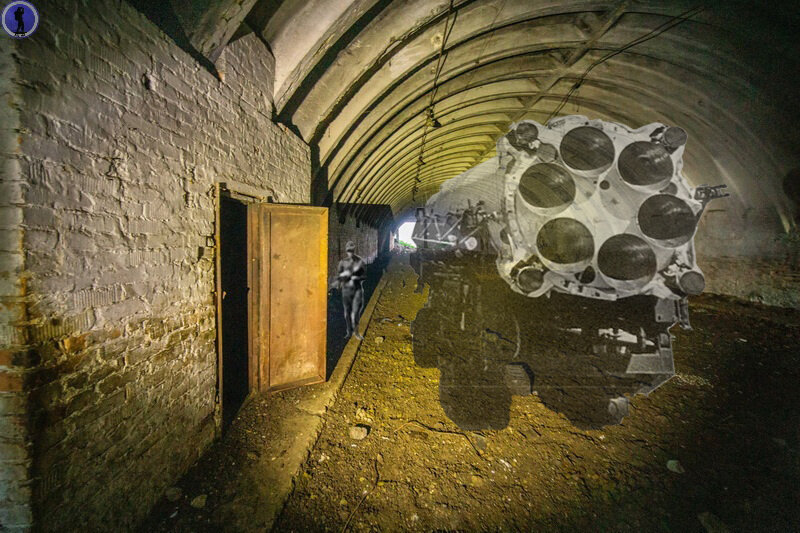 Лестница приводит к арочному сооружению из быстровозводимых сборных железобетонных конструкций, но все перегородки здесь уже порушили при рекультивации.