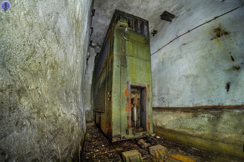 А вот на грузовом въезде был установлен гораздо более массивный и тяжёлый выдвижной железобетонный затвор.
