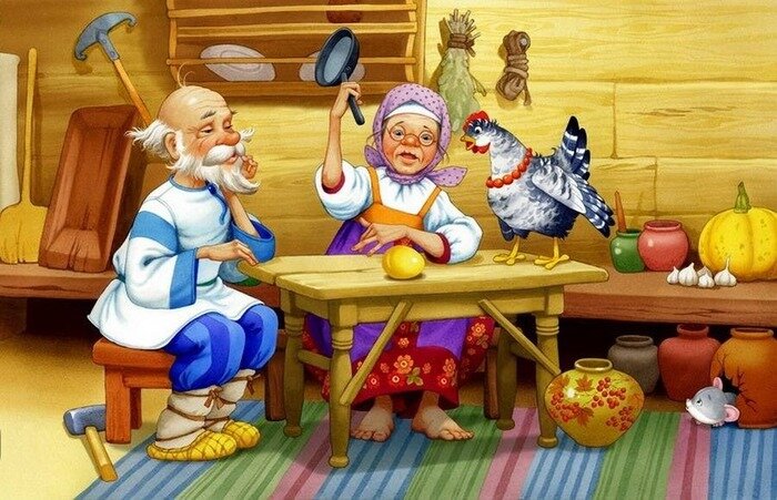 Сказка про Деда и Бабку, мышку и золотое яйцо знакома, пожалуй, каждому россиянину. Что же скрывает эта простая сказка? Перед Дедом и Бабкой появляется золотое яйцо. Вместо того, что использовать его с пользой, они пытаются его разбить, но ничего не выходит. И тут появляется Мышка и хвостиком своим легко разбивает яйцо. Дед и Бабка, до этого упорно пытавшиеся золотое яйцо разбить, начинают рыдать. Появляется Курочка Ряба и обещает снести ещё одно яйцо, но простое. Старики в восторге! Почему же Дед и Бабка так испугались золотого яйца? Дело в том, что в старину яйцо воспринималось как что-то неживое, из чего потом появлялась жизнь. Так яйцо стало символом жизни. А вот золото ассоциировали со смертью («Кащей над златом чахнет»). Выходит, что яйцо — символ жизни — появляется в виде приметы неминуемой смерти. Старикам, олицетворяющим движущееся к неизбежной смерти человечество, это совсем не нравится. Но тут появляется волшебница Мышка — существо одновременно земное и подземное. Она уничто