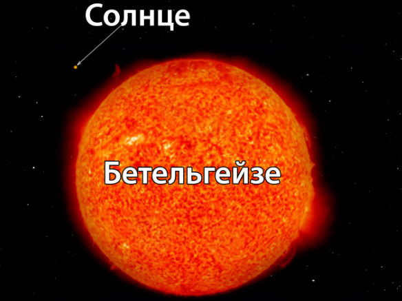 Звезда Бетельгейзе — красный сверхгигант, о котором человек узнал ещё в древние времена. На земном небосводе Бетельгейзе отчётливо просматривается невооружённым взглядом, отдавая красноватым блеском. Звезда расположена в Созвездии Ориона. Поэтому второе название Бетельгейзе — Альфа Ориона. Несмотря на то, что возраст красного сверхгиганта незначительный, около 10 миллионов лет, жизненный путь Бетельгейзе приблизился к концу. По сравнению с жёлтым карликом, как наше Солнце, такой тип звёзд живёт недолго. Зато Бетельгейзе является кандидатом номер 1 для обзора вспышки Сверхновой. Дело в том, что масса Бетельгейзе превышает солнечную в 15 - 20 раз. А это значит, что звёзды, превосходящие солнечный порог по массе в 8 раз. Вспыхивают Сверхновой с дальнейшим мгновенным превращением в нейтронную или чёрную дыры. В случае с Бетельгейзе, звезда превратится в компактную нейтронную звезду. Высвободившаяся энергия внешних слоёв разлетится во все стороны космического пространства. Энергии Сверхново