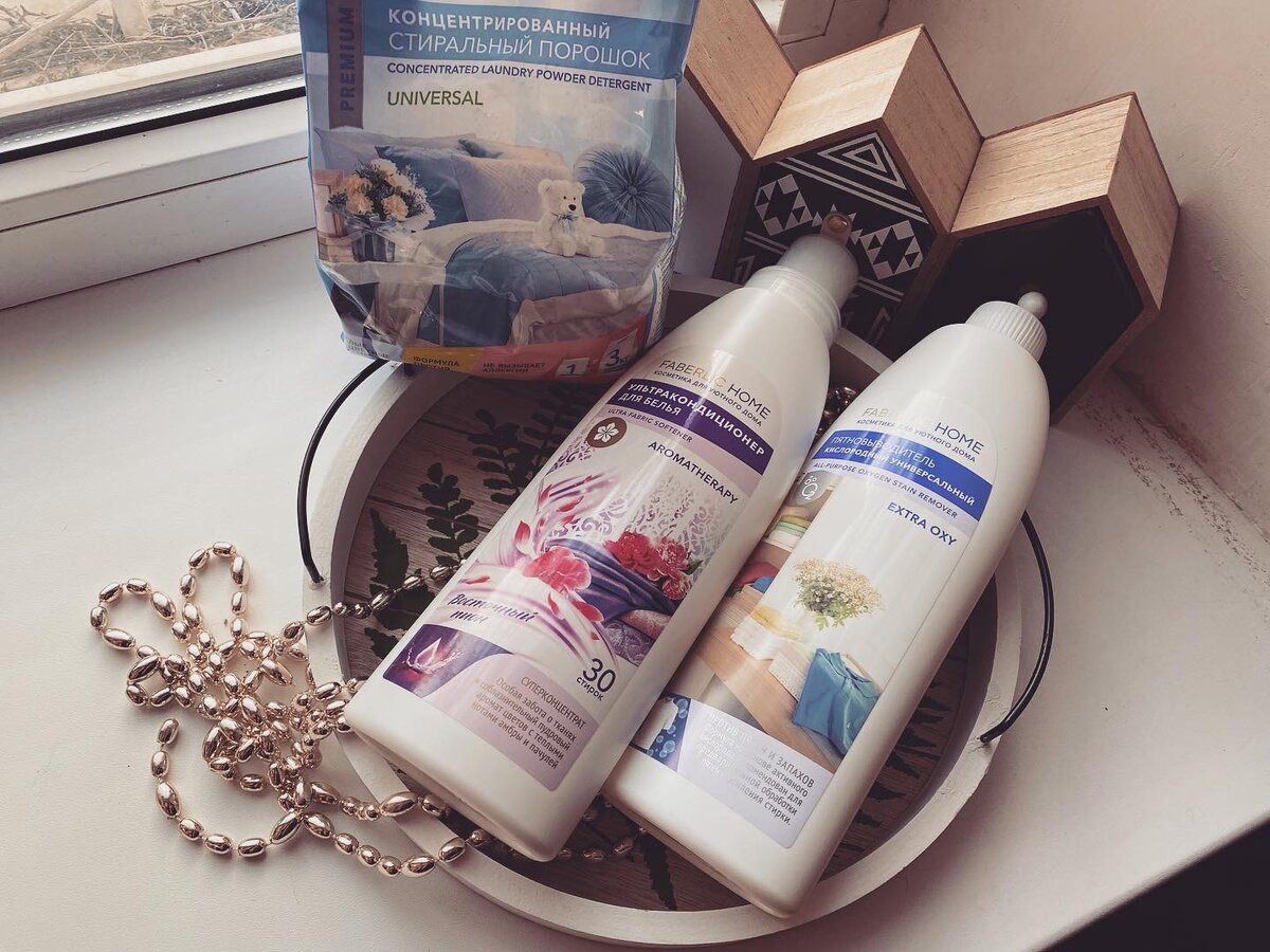 Два моих занятия по дому это стирка и мытьё полов, смешно, но так! Я по несколько раз в день мою полы, тут объяснимо у меня дома пума и не только, но откуда столько стирки, я по несколько раз в день загружаю машинку, мы либо свинки, либо излишние чистюли! И расход средств увеличивается, а ещё мы любим белое и светлое, а оно конечно требует особенного ухода и в этом спасает троица @faberlic Концентрированный стиральный порошок универсальный «FABERLIC HOME», артикул 30020 - порошок мелкого помола, с легкой, приятной отдушкой - даёт хорошую пену, отстирывает все пятна, я его использую в основном для пастельного белья и белых вещей - порошок концентрирован и его хватает надолго, экономично Объём 800 гр Ультракондиционер для белья ароматерапия «Восточный Пион», артикул 11853 - достаточно густой кондиционер, в упаковке насыщенный аромат, но на белье очень нежный и тонкий, сохраняется долго и пока белье хранится в шкафу и не приобретает засох слеживания Объём 500 мл Пятновыводитель к
