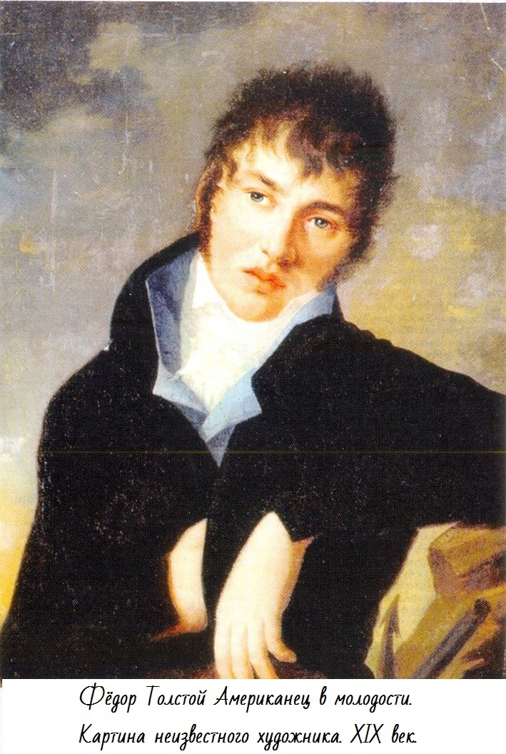 «Граф Федор Иванович Толстой, прозванный Американцем, был человек необыкновенный, преступный и привлекательный; так о нем выразился его двоюродный племянник Лев Толстой. Он прожил бурную жизнь, нередко преступая основы общечеловеческой нравственности и игнорируя уголовный кодекс. Вместе с тем он был человек храбрый, энергичный, неглупый, остроумный, образованный для своего времени и преданный друг своих друзей», – так начинает биографический очерк о Ф.И. Толстом – С.Л. Толстой. Биография же у этого человека выдающаяся. Участник первого кругосветного путешествия, герой шведской кампании и сражений с Наполеоно