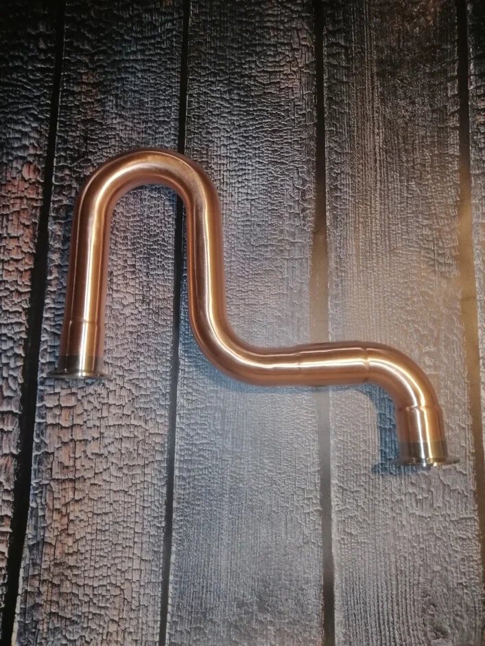 Всех приветствую с вами Егор мастер по медному оборудованию!!! Расскажу вам что такое лебединая шея в самогоноварении и для чего его используют. Само название пошло от аламбика тот самый красивый медный самогонный аппарат которым восхищаются все самогонщики. А именно его формами, округлый бак, вытянутая луковица и та самая лебединая шея или гусак которая уходит в холодильник. Почему именно такая форма? Дело в том что часть охлаждения пара приходилась именно на нее, и требовалось меньше воды для охлаждения. Сейчас в 21 веке проблем с холодной водой не возникает, только в ее экономии)) Данный отвод 21 века комплектуется соединительными клампами. А нужен такой отвод для создания аламбиков 21 века на клампах, без теста и глины. Данные отводы нужны для отведения холодильника за пределы бака, так же отвод дает +2-3 градуса к укреплению за счет восходящей трубы, так же очищает дистиллят от сернистых примесей делая напиток более питким. Медный отвод кламп 1,5 3