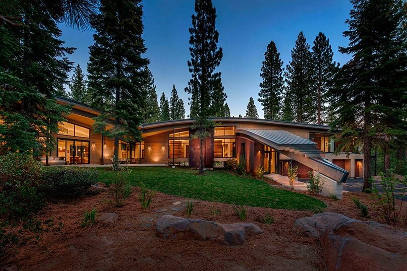 Этот парящий дом — некая современная интерпретация дома-горы. В подобном, но не столь стильном жилище обитал Бильбо Бэггинс — известный сказочный персонаж Толкиена. Расположено это архитектурное творение, не иначе, в местечке под названием Мартис Кэмп (Martis Camp), что в высокогорных районах Сьерра Невада.