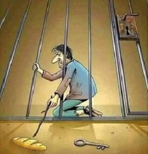 Как вы думаете, почему заключенный выбирает хлеб вместо ключа? Самое первое, что приходит на ум — то, что заключённый просто слишком туп, чтобы предпочесть ключ хлебу. Вывод: простой случай, когда у вас не хватает умственных способностей. Если немного подумать, то можно предположить, что заключённый уже почти ослеп от голода, и ему сначала нужно поиметь что-нибудь в животе. Так что он не тупой, но просто слишком голоден, чтобы быстро сообразить, что может схватить ключ и просто выйти за хлебом. Конфликт срочных потребностей и долгосрочных планов. Это даже не выбор как таковой. Человек просто может лучше соображать с полным желудком. Итак, сначала хлеб, потом ключ и, вертя его в руке, он ест хлеб, планируя свой побег... Ключ бесполезен, пока не появится хороший план побега из остальной части тюрьмы. Вывод: мозг отдаёт приоритет базовым чувствам или потребностям, таким как голод, хотя всегда лучше хорошо подумать, прежде чем действовать в соответствии с этими «животными» импульсами. Друг