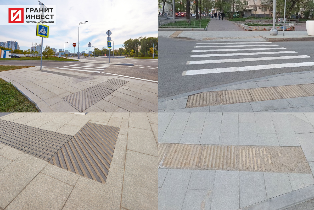 Вода и пламя, свет и тьма, гранит и бетон... Противостояния, которые длятся веками. Вероятно, вы встречали на улицах городов специальные плиты с рифленой поверхностью, и знаете, для чего они необходимы. Если же нет, рассказываем: тактильные плиты — наземные указатели для безопасного передвижения людей с ограничениями по зрению, предупреждающие пешеходов о препятствиях и опасных местах на пути движения. Тактильные плиты согласно ГОСТ Р 52875-2018 изготавливаются из бетона, керамики, натурального и искусственного камня и обладают определенными нормативными характеристиками, а также обеспечивают безопасность и информативность для пешеходов. Это в теории, а на практике у нас иногда выходит совсем другая история... Перед вами фотографии двух улиц, которые были благоустроены в одно и то же время. Но на одном пешеходном переходе использовали гранитную тактильную плиту, а на другом — бетонную, которая, по всей видимости, очень стремится к ассимиляции с окружающим пространством (хочет стать пл