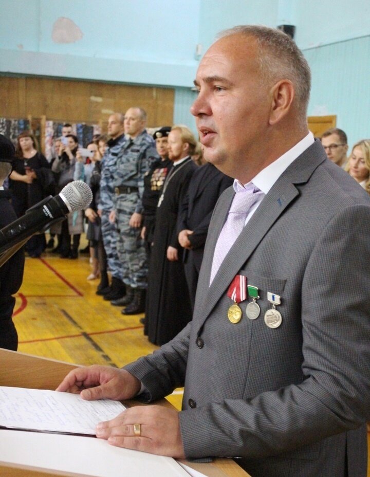 Директор школы Валерий Дубровин тепло поблагодарил сотрудников и ветеранов транспортного ОМОН Росгвардии за акти