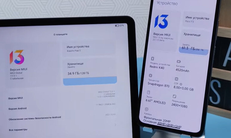 Что ж, вот у нас два Xiaomi Pad 5. На одном установлена MIUI 12.5 Enhanced, а на втором — свежая MIUI 13 Pad. Давайте проверим, есть ли какой-то реальный прирост в скорости запуска как системных, так и сторонних приложений на двух идентичных девайсах.