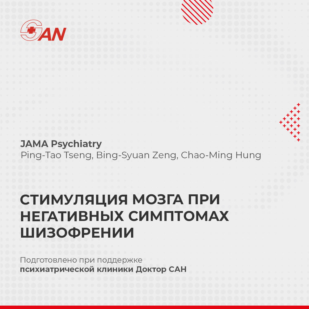 Негативные симптомы отрицательно влияют на функциональные исходы и качество жизни у пациентов с шизофренией, и лишь немногие терапевтические методы считаются эффективными. Исследования продемонстрировали, что неинвазивная стимуляция мозга (НСМ) может быть эффективной при лечении негативных симптомов. Результаты данного сетевого метаанализа показали, что возбуждающие протоколы НМС в левой дорсолатеральной префронтальной коре были связаны со значимым снижением тяжести негативных симптомов. Поскольку для включения было доступно относительно небольшое количество исследований, необходимы дополнительные хорошо спланированные крупномасштабные РКИ. Подробнее о лечении шизофрении: https://doctorsan.ru/lechenie-shizofrenii