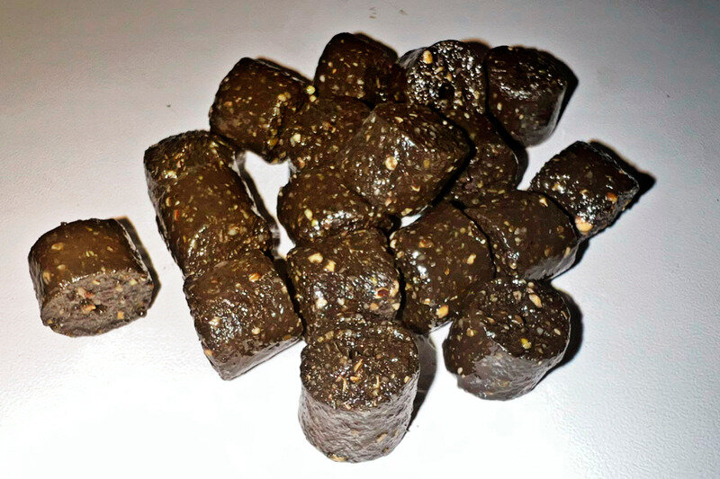 Пеллетс ХАЛИБУТ 14 мм просверленный, сдаем в серию совсем скоро. Получилось достаточно не плохо, если уж совсем относится критически к своей работе.