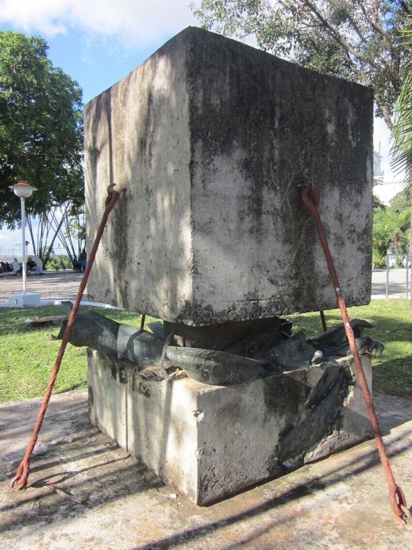 Памятник 35 годам диктатуры состоит из придавленной бетонным блоком статуи Альфредо Стресснера, который с 1954 по 1989 год восемь раз переизбирался президентом Парагвая. Так выглядит монумент, призванный напоминать парагвайцам о тёмных временах правления Альфредо Стресснера, который с 1954 по 1989 год восемь раз (!) переизбирался президентом страны. Памятник 35 годам диктатуры состоит из придавленной бетонным блоком статуи Стресснера; для верности конструкция стянута ржавыми скрепами, на ней надпись: «Больше никогда!» Стресснера называли парагвайским фюрером. Он охотно поддерживал других диктаторов — от Пиночета до Сомосы, в Парагвай бежали свергнутые правители соседних государств, страна превратилась в настоящий заповедник нацизма. Так, здесь жил главврач Освенцима, доктор Йозеф Менгеле, который слыл личным другом Стресснера, здесь же нашли весьма комфортабельный приют и другие беженцы из Германии (их число достигает 200 тысяч человек). Причём бывшие нацисты делились своим опытом с ме