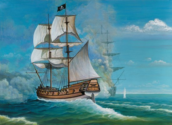 ...Яростный ветер играл безудержную свистящую мелодию на вантах, дополняемую аккомпанементом из скрипа палубных досок и зычных окриков капитана. Солёные брызги смешивались с проливным холодным дождём, обрушивая на измученных людей стену воды. Серое небо, вот-вот, готовое разродиться очередным смертоносным ураганом. Ветер гармонично вписывался в дьявольскую пляску непогоды, хуже неприятельской стали, рассекая и без того гротескные лица моряков.