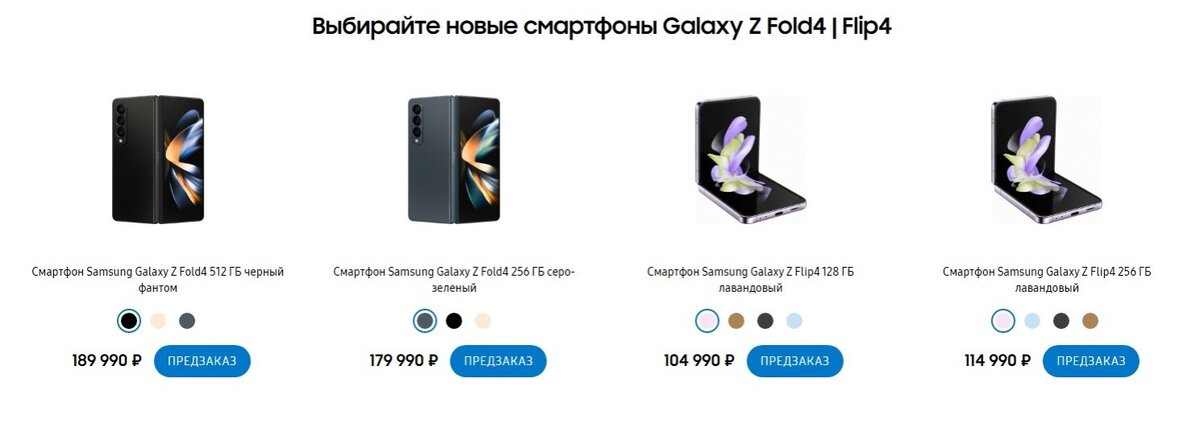 В начале марта Samsung приостановила продажи своей продукции на территории России. Но 1 сентября на официальном сайте компании открылись предзаказы на смартфоны Galaxy Z Fold 4 и Flip 4. Цены на новинки от Samsung следующие: Новые линейки телефонов Samsung выросли в цене по сравнению с предыдущими поколениями: Fold на 20 тысяч рублей, а Flip — на 15 тысяч. Помимо новых гаджетов, на сайте также появилась возможность приобрести другие устройства, вышедшие ранее. Однако цены на смартфоны серий Galaxy S и A очень завышены, а наушники и умные часы пока не доступны в продаже. Заглавное фото: fonpit.de