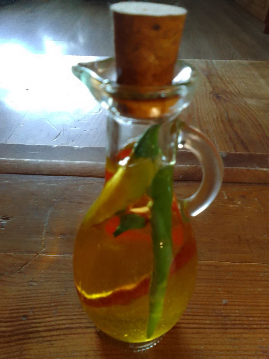 Сын вчера удивил. Позвонил вечером, начал рассказывать о том, как прошел первый день в институте, ну и конечно же плавно перешел на самые разные бытовые вопросы. И вроде бы все хорошо. Взрослый уже парень, со всем справляется, но пожаловался: "Готовил салат из овощей, которые ты мне оставила. И вот вроде бы все также, как ты делаешь, а вкус немного другой получился. Чего-то не хватает..." А ведь и правда не хватает, догадалась я - ароматного масла, самые разные бутылочки которого расставлены у меня на кухне, а вот сыну с собой ничего не дала. Стыд мне и позор! Хорошо, что вовремя вспомнили. Сейчас самое время приготовить и оставить настаиваться на пару месяцев несколько разных бутылочек. А вы готовите ароматное масло? У меня, как всегда, в первую очередь в дело идут пряные травы - базилик, укроп, петрушка, кориандр, розмарин, тимьян. В последнее время полюбила настаивать масло на сельдерее. Острый перец тоже активно использую, и вкусно, и красиво. В другой баночке смешаны самые разн