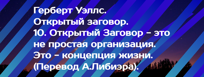 Когда будет ясно понято, что связующими звеньями Открытого Заговора, который мы имеем в виду, являются определенные широкие общие идеи, и что — за исключением, возможно, в случае научных работников — у нас нет текущего набора взглядов и привычек деятельности, которые мы могли бы направить прямо и без изменений на службу заговора, мы в состоянии осознать, что движение, которое мы рассматриваем, с самого начала должно быть разнообразным по своим традициям и элементам, а также разнообразным по своим методам. Оно должно сражаться на нескольких фронтах и со многими видами оборудования. У него будет общий дух, но вполне возможно, что между многими из его способствующих факторов могут быть очень большие пробелы в понимании и симпатии. Это - не простая организация.