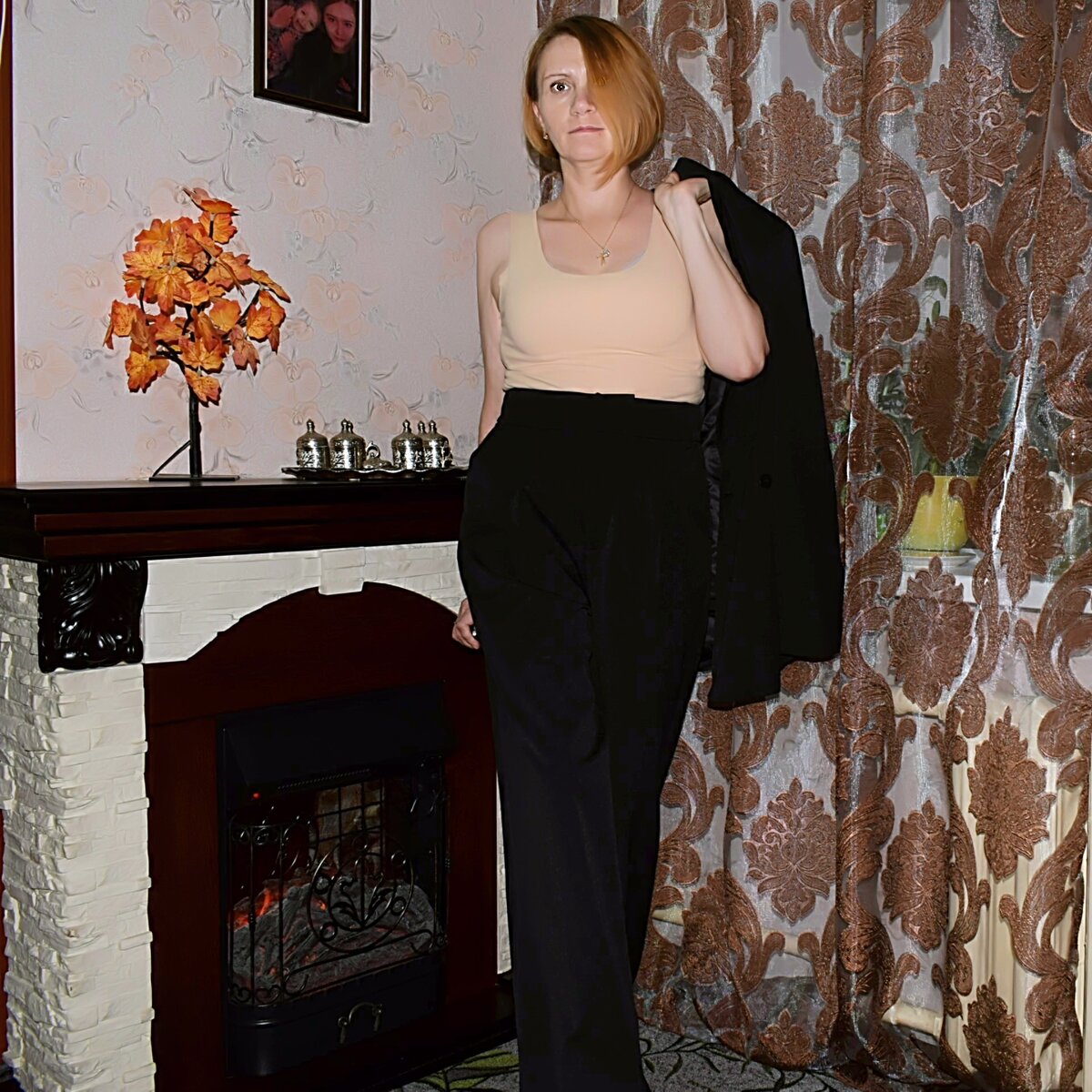 Это действительно шикарная вещь, тот случай, когда от покупки получаешь удовольствие. Есть одно но, из за чего мне грустно, костюм мне велик. Снимаю как есть, не закалываю, для картинки. И пишу как оно есть. На свои параметры 92-80-92 и рост 168 см, я выбрала привычный мне размер М. Во первых длина брюк, в описании указан рост 175 см. Думаю на 180 см будет отлично. В талии и бёдрах, тоже оверсайз. Пиджак по мне так идеально подошёл. Думаю, что делать с брюками, так как расставаться с костюмом не хочу. Пришёл костюм на плечиках и в поэлителеновом чехле на молнии. Запаха нет. На костюме есть фирменные этикетки и бирки, информация представлена на русском языке. Пошив фабричный, крой ровный симметричный. По качеству придраться не к чему. Материал плотный, смесовый: 66% полиэфирное волокно, 30% вискоза, 4% спандекс. Подклад из плотного материала, есть запасные пуговки. Костюм из двух предметов, Пиджак и брюки Пиджак однобортный с отложным воротником, на спине по центру шлица. Ру