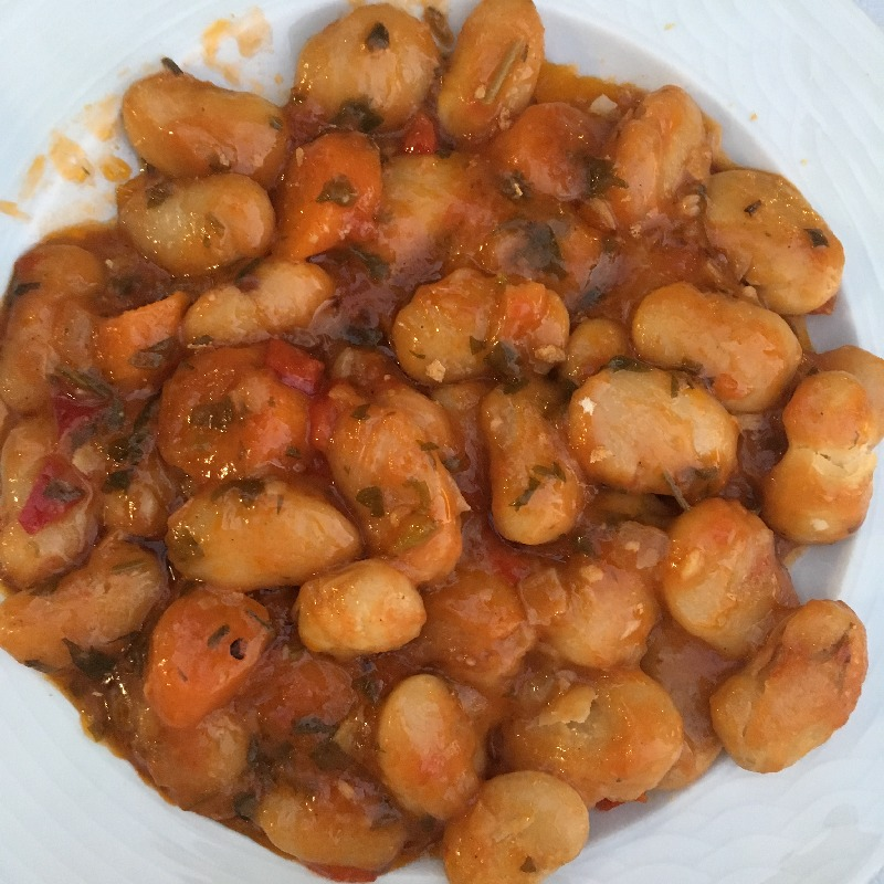 В Греции мы попробовали очень простое и вкусное блюдо — «Гигантес яхни». Это полезное и питательное вегетарианское блюдо из местной гигантской фасоли, которое очень легко приготовить дома. Происхождение рецепта гигантес яхни связано с традициями