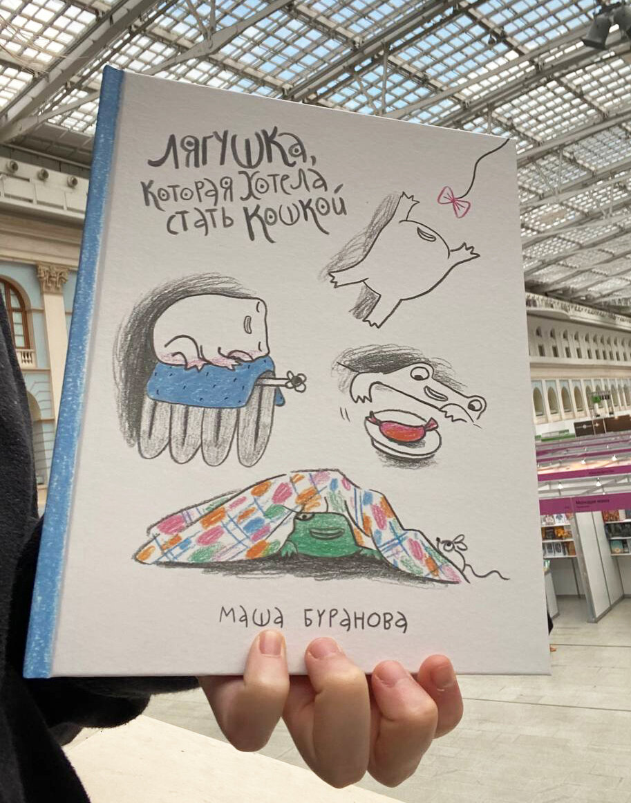 В замечательном издательстве Гудвин вышла моя авторская детская книжка "Лягушка, которая хотела стать кошкой"! Вся книжка полностью нарисована цветными карандашами, и это - моя гордость. Со 2 по 5 сентября в Москве проходит книжная ярмарка (ММКЯ), где можно полистать и купить книжку на стенде издательства Гудвин (В-15). Вот такая чудесная книжка в твердой обложке получилась! И огромная заслуга в этом издательства, поскольку подготовка к печати и сама печать карандашных иллюстраций - дело очень непростое. Так что выражаю всей команде огромную благодарность! Итак, эта история о том, как разные звери мечтают стать кем-то еще. Лягушка хочет стать кошкой, кошка - лебедем, лебедь - пантерой и так далее. В конце книжки читателей ждет небольшая игра на внимательность. Вот немного иллюстрации из книжки Идея книжки пришла мне год назад, а чтобы ее продумать и нарисовать в неспешном режиме потребовалось больше полугода. Расскажу как это было. Сначала я завела три крафтовых листа формата А3