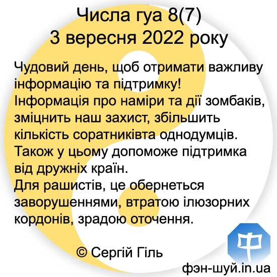 Чудовий день, щоб одержати важливу інформацію й підтримку! Будь-яка правдива інформація про наміри й дії zомбаков, зміцнить наш захист і побільшає кількість соратників і однодумців. Також у цьому допоможе підтримка від дружніх країн Для рашистов, це обернеться безладдями, втратою ілюзорних границь і зрадництвом оточення. Корисна інформація 13 міцне здоров'я! Сприятливий день для навчання, одержання нової інформації, екскурсійних пізнавальних поїздок, пошуку спонсорів, розширення кола клієнтів, підписання договорів і знайомства із впливовими людьми. Успіхи цього дня вкладайте в здоров'я, охорону свого простору, порядок, дисципліну, у своє оточення й однодумців. © Сергій Гіль https://фэн-шуй.in.ua/cgi-bin/main.cgi?esse=1317 #Сергій_Гіль_фэншуй #правда_війна #обман_росія #рашисти_брешуть #zомбаки_вбивають #россия_напала #клиенты_фэн_шуй #получить_інформацію #феншуй_навчання #договір_фэншуй
