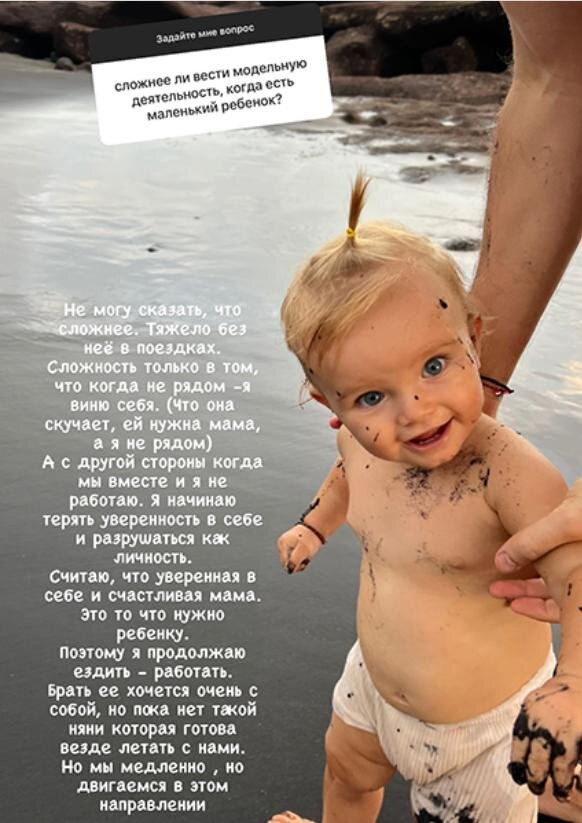 Модель объяснила, как совмещает работу и личную жизнь. Еще больше новостей в нашем Telegram-канале, группе ВКонтакте и канале Яндекс.Дзен ______________________________ Недавно 23-летняя Алеся Кафельникова, которая год назад стала мамой, рассказала подписчикам о своем питании и лайфстайле, а накануне устроила в личном блоге игру "вопрос-ответ". Похоже, знаменитостям теперь не нужны интервьюеры, ведь поклонники могут сами их опросить, а те, в свою очередь, выбрать наиболее интересные для себя варианты. Что и сделала Алеся, на удивление откровенно ответив на ряд вопросов о личном и профессиональном. Из ответов Кафельниковой мы узнали, что она кормила дочь грудью только первые 7 месяцев, а также научилась совмещать моделинг и личную жизнь, однако все еще винит себя, когда не может быть рядом с дочерью. Не могу сказать, что сложно вести модельную деятельность, когда у тебя есть маленький ребенок. Тяжело без нее в поездках. Сложность только в том, что, когда я не рядом, я виню себя. Что она