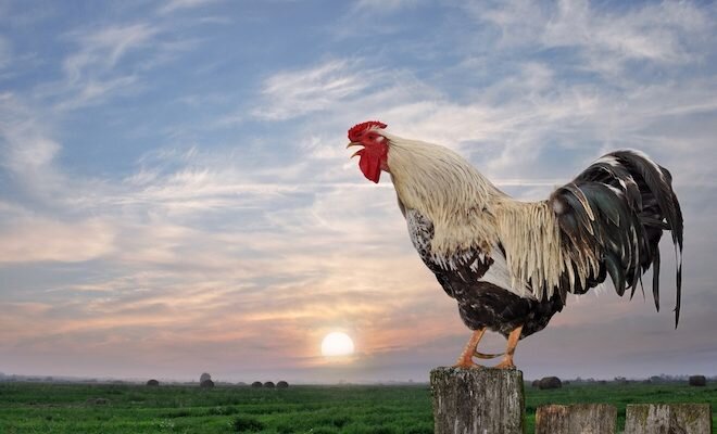 Во сколько начинает кричать петух? Самый частый ответ – на рассвете, возвещая начало нового дня. А как же тогда быть с выражением первые, вторые, третьи петухи. Третьи петухи - это когда? И когда же все-таки первые? Удивительное дело, но эти вопросом долго никто не задавался. И вот не так давно японские ученые решили таки докопаться до правды и узнали, как работают биологические часы петухов в условиях постоянного дня и ночи. Выяснилось, что они кукарекают не по солнцу, а подчиняясь собственным циркадным ритмам, вне зависимости от наличия источника света. Как правило «первые петухи» случаются в районе полуночи, вторые - ближе к трем часам ночи, а третьи - в 4 часа утра. В этом плане не позавидуешь бабам, которые раньше на селе вставали со вторыми петухами, чтобы замесить тесто и подоить коров. А вообще, петухи кукарекают, заявляя тем самым о своих правах на определенную территорию, чтобы снизить возможность физического столкновения с противниками. Именно поэтому первым кукарекает доми