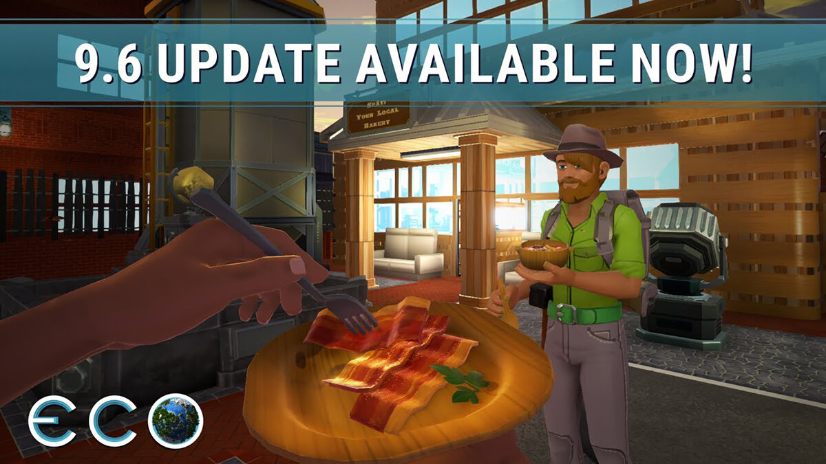 Здравствуйте Eco жители, после месяца проведения Playtest с игроками и мододелами, мы наконец то готовы объявить о выходе обновления 9.6. В этом обновлении мы сконцентрировались на улучшение погружения игрока в атмосферу Eco, добавили 3D модели для каждого вида еды в игре, а так же переработали вид от первого лица с огромным количеством новых анимаций. И в завершении мы добавили передвижной магазин для осуществления мобильности торговли и новую игровую механику, изменяющую Экономику: Порча продуктов питания!