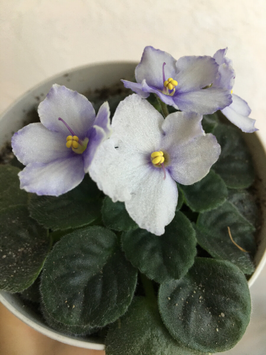 С фиалками у меня взаимная искренняя и самая настоящая любовь😍 Любовь с первого листочка и до цветущих «горшочков». Все потому, что первая фиалка в моем доме появилась листиком и дальше я уже их сама размножаю. Всем привет, дорогие читатели. Я , Девушка Пион и мой блог о растениях. Люблю экспериментировать #непоправилам Создаю оранжерею в квартире. В моей коллекции уже + 100 горшочков на подоконнике и это количество только растёт. Я всегда была равнодушна к фиалкам. Но однажды мама принесла мне два листика фиалки и говорит, они так красиво цветут синенькими цветочками-укорени мне их. И тут началось...))) Эти пару листиков я успешно укоренила и дальше уже их размножаю. Что самое интересное, что ниже фото-это от фиалки с фиолетовыми листиками, но цветет она почему-то бело-сиреневыми, да еще и с мелкими блестками. Цветут мои фиалки практически круглый год. Вот и сейчас на улице осень, мой фикус и клеродендрум сбрасывают свою пожелтевшую листву, а фиалки зацвели. И как после этого их мо